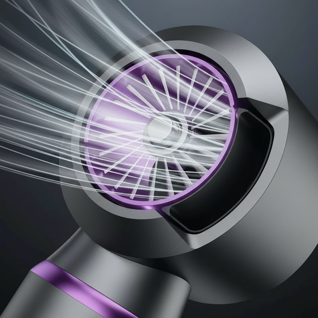 Answer 1: This hair dryer includes a powerful brushless DC motor, three wind speed settings, and overheat protection for safe use. It also features a foldable handle for easy storage and portability, along with a blue light indicator and the ability to emit negative ions for healthier, shinier hair.